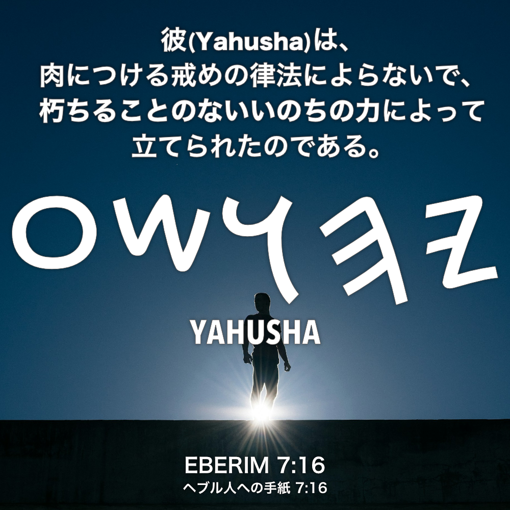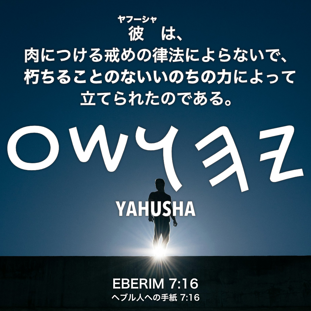彼(Yahusha)は、肉につける戒めの律法によらないで、朽ちることのないいのちの力によって立てられたのである。